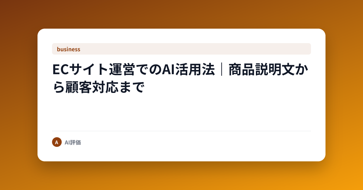 ECサイト運営にAIを活用する方法を解説。商品説明文の生成、レビュー分析、カスタマーサポート、在庫管理での活用法を紹介します。